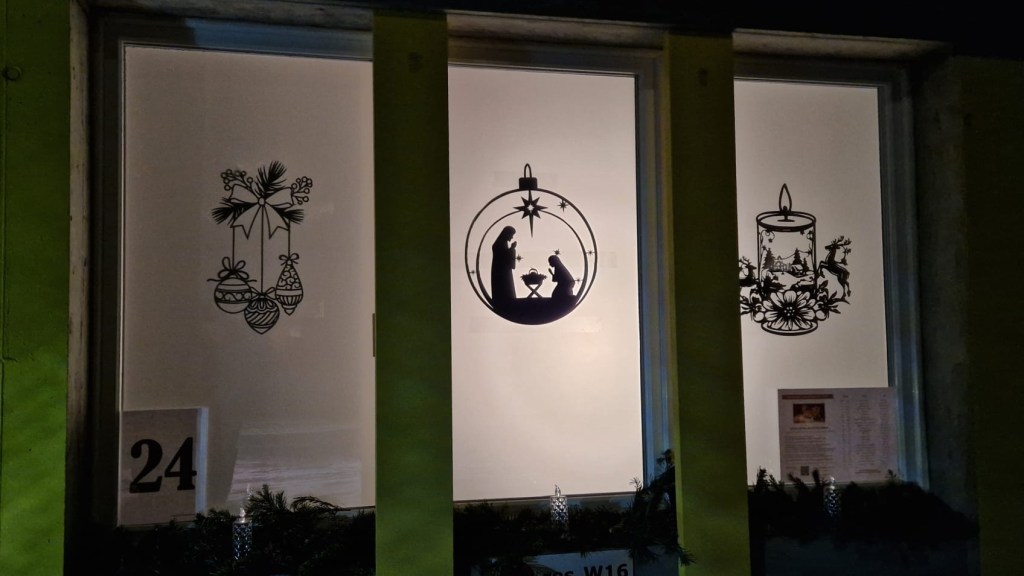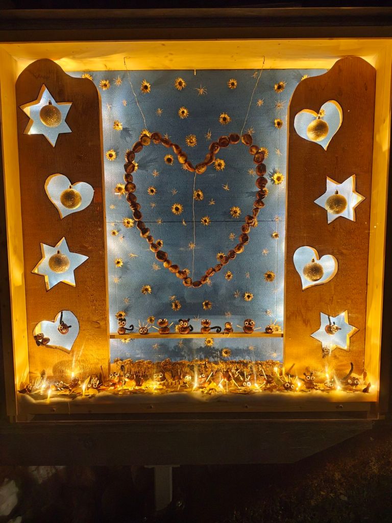 Besuche die verschiedenen Adventsfenster, täglich wird um 18.00 Uhr ein neues Fenster geöffnet, das bis 22.00 Uhr leuchtet: